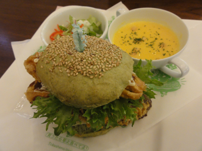 クレメント徳島のつづき徳島のご当地バーガー「とくしまバーガー」徳島の食材を使ったいろんなバーガーがあるようですが、クレメント徳島のダイニングカフェでいただきました♪とくしまバーガーの公式サイトはこちらなると金時とレンコンの阿波ベジバーガー♪サラダ・スープ付 800円(税込)すごいかさ高~下から順に徳島産なると金時、徳島県産すだち鶏、レタス、徳島県鳴門産レンコン、トマトボリュームたっぷりの具材をまとめるのは、ホウレンソウを練りこんだ特製バンズ豪快にかぶりつきました鶏はしっとり美味しくて、大好物のなると金時はカレー風味そして、レンコンが糸を引く~(笑)徳島の食材のチカラをダイレクトに感じます!『とくしまスゴイ!』大騒ぎで食べましたバンズもやわらかくて、ほんと美味しかったですさすが、ホテルクオリティ次行ったら、また食べると思いますお腹いっぱいなるけどとくしまバーガー認定書ダイニングカフェクレメントではテイクアウトのパンも売ってました朝食が付いてないプランだったので、部屋で朝食べたクロワッサンとゴマブレッド美味しかったです次回は徳島駅周辺のお土産めぐりを。。