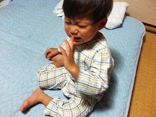 【2歳1ヶ月15日】今日で里帰りしてからちょうど2週間。なにをしているわけでもないのに毎日がバタバタとあわただしい2週間だったなぁ。。。22日の健診で歩く時間を作るように言われたので朝は1時間以上の散歩をするようになった。前は早起きするとついパソコンタイムにしてしまっていたけど今はその時間はひたすらテクテクお散歩。大抵5時前後に起床して6時半までウォーキング。家に戻って身支度をして朝食の準備をしていると7時半ごろにたつくんは起床。8時前くらいから朝食を食べなんやかんやしていると9時を過ぎていてそれから車に乗せてもらって買い物に出かけたり遊びに出かけたり。昼食を食べた後のたつくんはというと遊びが足りないのかお昼寝をせずに遊び続けることがすごく多い。そういう時は眠らないまま夕方になり4時過ぎからお風呂5時過ぎから夕食を食べるのだけれどこれがとっても大変。眠くなってきているからほんのちょっとしたことでものすごーく機嫌が悪くなるのでお風呂に入るのもご飯を食べるのもかなり気を使うのだ。。。今日も午前中は支援センターに行き1時間半くらい遊んできたのだが体を動かしたりなかったのか眠るタイミングがずれてしまったせいなのかお昼寝なしで遊び続け早風呂・早夕食のパターンだったのだけどお風呂で顔を洗おうと石鹸の泡をつけると大号泣!!!たつくん自身も何がなにやらわかんない状態になってしまったようで「ファッファッファッファ~」と大好きなフワフワ布団を求めてひたすら泣き続ける。「アワアワを顔につけられるの嫌だったよね~。 うんうん、たつくんの気持ち分かるよ~。 早く大好きなファッファの布団に行こう!」と抱っこして部屋に戻ってきた。このままご飯も食べずに寝ちゃうのかな・・・と心配したのだが夕食に用意されていたおでん(ちょっと季節外れだけど)にたつくんの大好きな昆布・大根・しいたけ・蒟蒻があるよ~と言うと途端に機嫌がよくなりニコニコ笑いながら食卓テーブルへ直行。素直にパンツも洋服も着て超超ご機嫌におでんをパクついていました。ちなみに一番食べたのは昆布。続いては大根。蒟蒻もけじゃんの分を横取りしておかわりしていたよ。昨日の夕食ではやたらとご飯を食べたがる日で4回くらいおかわりを要求したのだが今夜はご飯は食べずひたすらおでんを食していた。具沢山お味噌汁とトマトも食べたけど…。たつくんの食べ方を見ていると自分に必要なものはちゃんと体がわかっていて一日とかじゃなくて何日かでそういうバランスをとりながら食べているなぁ~と感じる。野菜しか食べようとしない日もあればお肉を本当に美味しそうに食べる日もあって一日、一食でバランスよくというのはそうそう毎日続かない。でもこうやって何日かでちゃんと自分で調整しているみたいだからたんぱく質源を嫌がって食べない日があっても野菜を嫌がって食べない日があってもそんなに気にしないでいていいんだよと心から思えるようになった。離乳食期はいろんな情報を頭にいれすぎてちゃんとちゃんと!と思いすぎていたけど今はいい意味で力が抜けてきたかな~。ご機嫌に夕食を食べそれから大好きなチュータンとの電話タイム。実家に来てからはほとんど毎日のように携帯のテレビ電話でマッコリと話をしているが今日はかけた時間が早すぎてつながらず。留守電にメッセージを入れておきました。少し前までは電話も話すよりも聞く方が多かったけどここ一ヶ月くらいですっかり成長しておしゃべりも本当によくできるようになったよ。今日もマッコリの留守電に「たちゅっさっ。」と呼びかけていて横でけじゃんが「お父さんと話したかったよ。 また電話するね。 バイバイ。」って感じで話を誘導すると一生懸命その通りにメッセージを言ってたりして思わずフフフとにやけてしまった。最後は『たちゅ語』で「ビャイビャ~イ!(バイバイ)」と挨拶。まわりと比較すると言葉は遅い方だろうけどたつくん的にはかなり言葉も増えていろんなコミュニケーションが取れるようになってきたよ。まだまだけじゃんの通訳がいる『たちゅ語』が多いけれどけじゃん的にはこの今限定の舌足らずさがたまらなくかわいくて好きだったりするんだよね。とはいってもちゃんと大人みたいに言えるのもこれまたかわいいんだけどね~。そうそう、実家に来て覚えた言葉の一つは『蚊』「蚊はこわいよ~。プーン、チクッてされると かゆいかゆいになって大変なの!」と度々言っていたせいか『蚊』ではなく『かは』というのだけれど言葉と蚊自体をしっかり覚えたみたい。しかも家の中に蚊がいるとちゃんと見つけてくれてけじゃんに「かは~!かは~!」と教えてくれるようになった。最初は本当にいるのかな?と思ってしまったんだけどあまりに言うので近くに行ってみたら本当に飛んでいる!今夜も夕食後たつくんがしきりにリビングの部屋の隅を指差して「かは~!かは~!」と言っていた。見てみたけどその時はいなかった