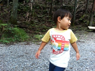 【2歳1ヶ月28日】昨日の夜遅くマッコリがけじゃんの実家にやってきた。たつくんには一応お父さんが夜来ることは伝えてあったけどどこまで理解していたかは不明。。。昨日は昼寝をなしだったので早めに夕食を食べお風呂&寝かしつけをダーダーにお願いすることにした。出産でけじゃんが入院中は一緒にいられないので嫌がるようでなければ・・・と試してみたのだが泣いて嫌がるようなこともなくダーダーと一緒に眠りついていきました。昼寝なしですごく眠かったからというのもあるんだろうけど大好きなダーダーさんがいてくれればなんとか大丈夫かな~とちょっと安心したよ。でも眠りつく時にけじゃんがいなかったからか泣きはしないものの気持ち的にはすごく不安な思いがあったようで普段はそんなことないのに夜中2~3時間おきに「かーた~~~ん!!!」と寝ぼけながらけじゃんを探して目を覚ましてしまっていた。そしてその時、たつくんに見つからないようにとマッコリは布団をかぶって隠れていたのだが普段はない大きな物体に寝ぼけながらたつくんも大注目。布団をかぶった横たわるマッコリを指差しながらけじゃんに何度も何度も「これ、なぁ~に???」と質問。本当のことを言うわけにもいかず「なんだろうね~。」と言葉を濁してすませたけど確かにあれは「これ、なぁ~に???」と聞きたくなるだろうな。。。そして今朝。いつもは7時過ぎに起きるたつくんだがけじゃん達がゴソゴソしているのに気がつきなんと5時半に起床!そしてマッコリ発見!!!久しぶりに再会したお父さんを前から横から後ろから・・・いろんな方向から観察。まるで本当に本物か確かめているようでした。そして本物のお父さんと確認後それはそれはもう大喜び。大好きなダーダーに朝の挨拶を忘れるくらいお父さんにベッタリで会えたことを喜んでいたよ。6時過ぎから実家の近所を3人でお散歩。台風がくるという天気予報だったので雨でどこにも出かけられないんじゃないかと心配したけど今日は午後から雨になる予報で朝は散歩日和のとても気持ちいい気候だった。久々に家族3人での朝の散歩。とっても気持ちよくって本当に幸せなだな~と一緒にいられる大切さをしみじみとかみしめたよ。朝食の後、車でドライブ。マッコリの希望は自を感じるところにたつくんを連れて行きたいとのことだったのでキャンプ場や釣り場のある渓谷へ遊びに出かけた。が、朝6時前から起きていたたつくんは行きの車中で眠ってしまった。結局着いてから1時間くらい車で眠らせてそれからお昼ご飯を食べて渓谷へ。予報どおり午後からは小雨がポツポツと降り出してきたけど渓谷の道は木がたくさん生い茂っていてこれくらいの小雨なら木が傘代わりになってさえぎってくれるのでそのまま散歩をすることにした。ただの川沿いの山道を歩いているだけなんだけどなんだかすごく楽しいしマイナスイオンにあふれているからかものすごく気持ちがいい。たつくんもとてもご機嫌で大喜び。大好きなお父さんと一緒に過ごせているという嬉しさも大きかったんだろうな~。本当にニコニコしまくりでここ最近で一番嬉しそうで楽しそうだったよ。自分でも歩くんだけど久々に再会して甘えたかったみたいで何かあるとすぐにお父さんに抱っこ~とせがみまるで小猿さんのようにマッコリにしがみついていたりトイレも今まで外出先でもお父さんよりもお母さんと一緒がいいと言っていたのに今日はお父さんと一緒がいい~とマッコリにベッタリ。突然お父さんと離れ離れの生活になってそれに対して何も言わずに(言えずに)いたけどやっぱりすっごく会いたくて一緒に遊びたくてたまらなかったんだな~って当たり前のことだけど改めて感じたよ。これから産後しばらくも離れ離れの生活。ダーダーやばぁちゃんにかわいがってもらって皆に囲まれて楽しく過ごしてはいるけれどお父さんのいない生活はたつくんにとってもやっぱりすごく淋しいんだよね~。けじゃんはたつくんが寝た後にマッコリに電話していろいろ話をすることもできるけどたつくんは一日に5分くらいテレビ電話するだけだし自分の気持ちも思うように伝えられるわけじゃないもんね。。。こうして離れている時間が長くなると家族一緒にいられることがどれだけ幸せなことか本当に実感する。一緒にいることが当たり前すぎるとついつい感謝の心を忘れがちだけどやっぱり家族で暮らせるということはなによりの幸せだな~と今日の一日で心から思ったよ。ディズニーランドみたいな大掛かりなレジャー施設に遊びに行くのも楽しいけどこういう自然の中で過ごす時間は心が洗われるようでなんともいえず心地よくて本当に楽しかった。けじゃんの気持ちもすごくリラックスしたからお腹の赤ちゃんも喜んでくれてたかな。。。こういうところに来るたびに思うけどそのうち友達一家と一緒にバンガローとかに泊まるキャンプがしたいな~。自然の中で遊ぶと本当に心が豊かになるし子供達にはできる