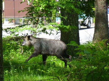 出た~!ニホンカモシカと遭遇!去年は小鹿と遭遇したけど、まさか同じ鹿??( ゚Д゚)