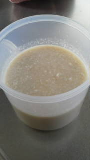 レシピ投稿ページなどでやたらと見かける「塩麹(塩糀)」の文字なんでも万能調味料…らしいしかも麹と塩と水だけで簡単に手作りできる…らしいそんなウマイ話ならちゃっちゃと作ってみようじゃないの!と食いしん坊(いやしん坊とも言う)の血が騒ぎましてさっそく仕込んでみましたよん♪********材料米生麹 400グラム(いつもはもっと種類がいろいろあるのに これしか売ってなかったので…やっぱ塩麹ブームのせいで売り切れ?)塩 120グラム水 ひたひたになるくらい作り方米生麹をほぐして塩を混ぜ、ひたひたまで水を加えたら1日1回かき混ぜて1週間から10日ほど放置発酵して甘酒のようなカンジになったら冷蔵庫へ~以上!**********簡単すぎなんですけど????注意と言えば麹が水を吸った分2日目に更にひたひたになるくらい水を足すことくらい?不安と言えばネットで見つけたレシピは「麹を10とすると、塩の量は3ぐらい」だったので塩を120グラムにしたんだけどねそのレシピ、あとでよく読み返してみたら「低温乾燥こうじ」っての使ってた(汗)生だと塩の量が違うのかな?と思っても後の祭りなので乾燥と生の違いは…水分くらいだろ!って事で強引にこのまま寝かせます!進退は疑うなかれ!!(え)ただ今、4日目突入~麹独特のきっついニオイは柔らかくなった気がしますかき混ぜたヘラをちょっとなめたらとがった塩気もまろやかになってきた?かな?でもここまでやって気が付いたんだけど……これ水じゃなくてご飯入れたらしっかり三五八じゃね??(汗汗汗)(三五八は炊いたご飯に麹入れて半日くらい保温しておいて そのあと塩入れて1週間か10日くらいでできます 割合は塩3・麹5・米7…で三五八)ってことは~これってあんまり甘くない三五八って事??三五八なら普通に食べてるやん!となんだかちょっと期待が薄れた~~~でも!「塩麹」だから!ブームになるほど美味い(らしい)んだから!きっと何かが違うんだよ!うん!きっと!!(ドキドキ)でもでもでも!三五八は温かいご飯に麹入れるから発酵が早いんだけどこいつは発酵が遅々として進まない…ってかこの寒さで発酵するのか???と不安家の中の暖かいところ探して放浪してるけどね直射日光が当たらなくて暖かいところって条件が難しい失敗したらご飯入れて三五八として復活!ってな回避策ってできるのかしらん(←すでに負けたカンジ)追記今スーパーに行ったら「三五八漬け 塩麹仕立て」っての売ってたやっぱ味的には三五八なのか?生まれた時から食べてるあの味なのか??↑よろしかったらポチッと一押し拍手をくださいね♪(拍手ありがとう画面は10パターンがランダムに出るようになっております)(コメントのお返事は原則として、翌日か当日の最新記事の中でさせていただいてます)