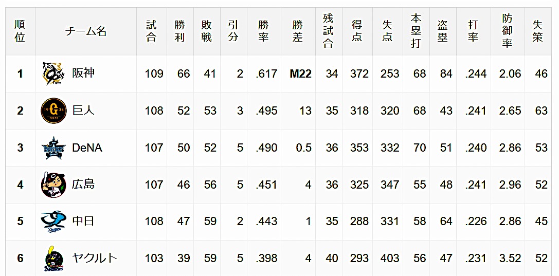 2025年8月30日阪神3-2巨人 23回戦 阪神16勝7敗(甲子園)2代目タイガース非公式サイトです高橋遥人投手が3勝目!前回8月22日のスワローズ戦では6回11奪三振 そしてこの試合では5回7奪三振だった どこが相手でも三振がしっかりとれるから完全に復活したとみて大丈夫そうね2回の失点はジャイアンツの中軸に3安打を集められての1点だったけど いずれもシングルヒットだし 後続の下位2人は連続三振で抑えてます 1回裏に1点を先行した直後だけに本来は点を与えちゃいけないとこだけどね5回は三振三振で二死を取ってから2番泉口選手のヒット 岡本選手はフォアボールで1・2塁となって 4番岸田選手にタイムリー2ベースを打たれて1点を取られ2-2の同点にしちゃいます 最後はキャベッジ選手を三振 内容的にはまだちょっと不安定な感じはあるかな ただし肝心なところで三振が取れるのが高橋投手の強みであり魅力なのよねタイガース打線も1点づつしか取れない!タイガースは1回裏 フォアボールの近本さんを中野選手が送って一死2塁として森下選手の2ベースで1点先取 ここで佐藤選手か大山さんにもう一本出てると優位性が増すんだけど2人とも凡退だった2回に同点にされたるけど 3回裏の攻撃は一死から中野選手がフォアボール 次の森下選手のヒットで一死1・3塁に このチャンスで4番佐藤選手に1・2塁間を破るタイムリーが出て1点勝ち越します5回表に追いつかれると その裏すぐ先頭の近本さんがフォアボールを選び 二死後に佐藤選手が2ベースで2・3塁となって5番大山さんは申告敬遠されて満塁よここで6番熊谷選手 ジャイアンツの船迫投手は初球ストライクのあと際どいところばかりを攻めてきたけど4球続けてボールの判定で押し出しになったわ 熊谷選手は思わずガッツポーズ 結局これが決勝点になったんだから好い仕事よ!勝ちパターンのリレーで1点差を守る!先発の高橋投手が5回80球で交代したので 残り4イニングは必勝リレーの投手を繰り出します6回はドリス投手が先頭にヒットを打たれますが あとの3人を凡打に抑えて仕事を終えます7回は及川投手 二死から岡本選手にレフト前ヒットされて4番岸田選手を迎えるんだけど きちっと三振で締めました8回は石井さんね キャベッジ~吉川~リチャードときな臭い打者を相手に 三振 三振 ファーストゴロと3人で片付ける万全の投球を見せつけたよ9回は代打坂本選手を三振に取ったんだけど 次の代打若林選手がサードへ痛烈なゴロを打ち これが佐藤選手のエラーを誘って打球はレフト線をころがっていくのよ 打った若林選手はセカンドを狙って疾走してるここでバックアップしたレフトの熊谷選手がセカンドの中野選手へ素晴らしい送球でタッチアウト リクエストでも覆らず二死になったのよ 守りでも熊谷選手は大活躍ね 岩崎さん助かりました 最後は丸選手をセンターフライに仕留めてゲームセットです この試合の結果タイガースのマジックは一気に一桁9になったよね Xデーがいつになるかだけど 甲子園で決まる可能性が高そうね緩みは許されない!監督さんが高寺選手の様子にかなり怒ったんだってね これは即二軍行きになるかな? とにかく以下はスポーツ報知さんの報道の一部よ 1点リードの6回無死一塁。代打・高寺は送りバントを試みたが、投飛になった。しかし、高寺は一塁に全力で走ろうとしない。結果的に1死で終わったが、相手がうまければ併殺になってもおかしくなかった。「お子ちゃまレベルの選手」「ひよっ子」と厳しい表現を続け、「単純にフライが上がって走っていないとか。その後、1軍の選手と同じように(ベンチの)後ろに下がってしまって。『逃げてんじゃない』と。自分のプレーが少しうまくいかないからって下がっているようでは、このチームじゃ戦えない。何をしているんだ、と。それは自分の責任ということでタイガースの1、2軍のスタッフを含めて全員で反省していきたいと思います」と怒気を込めた。注目集まるCSファーストステージさて優勝がほぼ決まりってことになって 次はCSに向けての動向が気になってくるよね 現在セリーグの2位がジャイアンツ 3位はベイスターズとカープが全く同率で並んでるよ しかもその2チームと5位ドラゴンズとの差も0.5ゲームしかないわ これってどこがCSへ勝ち残るか全く分かんないわ2位のジャイアンツは ベイスターズには14勝6敗1分と圧倒してるからこことやりたいだろうね カープに対しては7勝11敗と劣勢なのよ ドラゴンズには10勝9敗とほぼ互角ジャイアンツとしてはカープにだけは出てきてほしくないんじゃないかな この3位争いというのがこれから注目されるとおもうし展開が面白そう ブログを応援してくださる方はこちらから❤