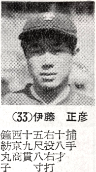 背番号33(その1)みなさんこんにちは 2代目タイガース非公式サイトです背番号33について始めるんだけど パっと頭に浮かぶのは2025年現在着けている糸原選手くらいじゃないかなあホントに聞いたことない人ばっかり出てくるし資料もすくなくてイメージが湧かない選手もいるのよね でも一度はタイガースのメンバーだった人たちなんだから つまんないとおもわずに最後までお付き合いください「33」を戦前に着けてたのは一人だけ とにかく当時は二軍すらない時代 監督の背番号が「30」だったわけで それより大きい番号は補欠か今でいうと育成枠みたいな感じなのよ 大物選手というのはあまりいないのね 前置きはこれくらいにして本編へ 今回は4人を一気に紹介するよ上田 正 外野手この番号は意外にも球団創設2年目の1937(昭和12)年から使用されている。「33」を最初に着けた選手は上田正で右投げ右打ちの外野手だった。広島県出身で広島県松本商業学校(現:広島県瀬戸内高等学校)を卒業すると地元の社会人野球チーム「全呉」でプレーしている。1937(昭和12)年の5月にタイガースに入団するが春季に7試合出場したところで日中戦争のため召集されてしまう。1940(昭和15)年に除隊されて翌1941(昭和16)年からタイガースに復帰している。打率は1割台の前半で盗塁数も少ないことから、おもに守備要員だったことが想像できる。1943(昭和18)年まで公式戦に出場した記録が残っている。特に1942(昭和17)年は全63試合に出ているがスタメンは開幕から10試合程度で、あとは控えに回り、後半に守備で出場するのが仕事だった。1944(昭和19)年には大東亜戦争のために再び召集されそのまま戦死されている。享年30歳。通算成績は実働4年116試合205打数25安打10打点5盗塁26四球23三振、打率.122という数字が残っている。阪田 正芳 内野手(再掲)阪田選手はすでに背番号「20-3」で紹介しており全文を再掲しますね1944年に上田が招集されたあと、戦争が終わって背番号「33」が復活するのは1950(昭和25)年、プロ野球が2リーグに分かれた年だった。大阪府出身だが兵庫県神戸市生まれとも言われる。いずれもプロ選手となった阪田3兄弟の次男で、長男の清春は滝川中から阪急・南海でプレーした捕手、三男の芳秀は波華商から毎日へ進んだ捕手。阪田正芳は167センチ66キロと小柄だが、波華商時代は投手。1946(昭和21)年の夏は控え投手として全国制覇を経験する。 1947(昭和22)年の選抜にはエースとして出場したが2回戦で、さらに1948(昭和23)年の選抜では弟・芳秀とバッテリーを組んで再度出場するも1回戦で敗れた。卒業後は実業団の郡山日東紡績に進み、1950年にタイガースへ入団し1年目に背番号「33」を着けた。入団と同時に内野手(主にショート)に転向したが打力がなく守備要員に甘んじていたようだ。 ルーキーで41試合に出ているがスタメンは4試合、58打数15安打3打点で打率.259に終わっている。スタメン4試合のうち1試合は投手として先発している。選手不足のための緊急的なもので、投げたのはこの1試合だけだった。2年目の1951(昭和26)年から背番号を「20」に変える。しかし38試合で24打数3安打2打点、打率.125と打撃に進歩は見られない。 3年目の1952(昭和27)年はわずか4試合の出場しかできず、結局3年間の在籍で退団に追い込まれた。退団後は社会人に戻り、松下電器に入社。1992年8月20日に64歳で亡くなっている。「33」は1年間しか着けなかった。丸山 臣洋 捕手この選手については記録や情報はみつからない。1951(昭和26)年にタイガースへ入団し阪田が背番号を変えたことで空いた「33」を着けてている。捕手として入団したようだが、1度も公式戦の出場が無いままこの1年限りで引退しており記録というものがない。 ウィキペディア内を検索してもページはなく、「阪神タイガース球団創設80周年の在籍選手名簿(丸山臣洋 | 在籍選手成績 | 80周年史 | 阪神タイガース球団創設80周年記念 特設サイト | 阪神タイガース公式サイト)にも名前と在籍年数があるだけで、出身地・出身校・アマチュア歴・生年月日等の情報はみつからなかった。伊藤 正彦 捕手背番号「33」を着けた4人目の選手だが、この選手についても情報がなく、1952(昭和27)年に入団した捕手ということだけしか判らない。もちろんウィキペディアにもページはない。 唯一見つかったのが次の画像。非常に貴重なものだろう。 18歳となっているが西京高卒で鐘紡丸子を経て入団してる。西京高校は山口県立と京都市立がありどちらかは分からない。前出の丸山から「33」を引き継いでいるが、同じように公式戦の出場も無いまま1年限りで辞めてしまっている。まとめ今回は4名を紹介しました 古い時代と言っても公式戦に少しでも出ていれば何らかの痕跡は残っているのね だから最初の2人は古いけど数字として残っている資料が見つかるのよところが2リーグ分裂のあおりで各チームの選手不足が深刻だった1950年ごろ入団した選手たちは 後半の2名のように試合に出ることもなく1年限りで退団してしまうケ