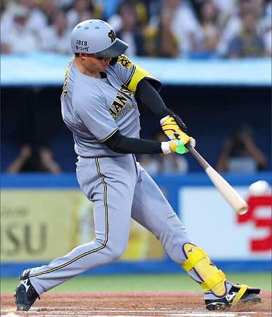 列伝17 リロイ・スタントン②引き続きスタントン選手の2回目です ①を見てない方はまず次を参照してね 猛虎異人伝17 リロイ・スタントン① | タイガース非公式サイト2代目 - 楽天ブログ(4)来日当初から目立った三振急遽来日したスタントンは、調整のため1979(昭和54)年4月7日の開幕には間に合わず、4月14日の中日1回戦がデビュー戦となった。この試合、4番・センターで先発出場したが3打数ノーヒット、翌日の2回戦で初安打・初打点を記録する。18日からは好調の竹之内に4番を譲り、スタントンは6番に下がった。来日第1号は、4月22日の大洋2回戦の4回表、野村収(のちに阪神)から放った同点2ランだった。キャンプやオープン戦を経ず、いきなりの日本での実戦でハンディがあるにしても、「やたら三振の多いやっちゃなあ」という印象が強く、5月を終わった時点で打率2割4分6厘、ホームランはわずかに4本で、田淵に代わる主砲として期待された働きには程遠かった。それに影響されたのか、チームも5月末時点で単独最下位に低迷している。(5)江川のデビュー戦でプロ初被弾をお見舞い!6月1日、2ヶ月のペナルティが明けて江川が一軍登録され、しかもこの日から国民の注目を集めた後楽園での伝統の一戦巨人VS阪神3連戦が始まった。阪神は第1戦に小林を先発させて先勝する。巨人は江川のメンタルを配慮してか「小林-江川」の直接対決を避けて第2戦の先発に起用してきた。この試合で江川にプロ入り初被弾となるホームランを浴びせたのが他ならぬスタントンである。巨人2点リードの4回表、スタントンの放った打球は、あっという間にライト上段へ突き刺さり、江川をして「完全な力負け。プロは怖い。」と言わしめた痛烈な一撃となった。 この一発が反撃の狼煙となって、7回表の若菜のソロ、さらにラインバックの逆転3ランへつながる。阪神は翌日も勝って3連勝を飾り、ここまで独走気味だった首位巨人に待ったをかけた。ちなみにこの年の阪神は、小林の執念がチームに乗り移ったように巨人戦に強く、6月22日からの3連戦と7月27日からの3連戦でも三タテをくわせるなど、年間の対戦成績で17勝9敗と圧倒している。(6)横浜スタジアムで場外ホームラン、西京極では3者連発!さて、初登板の江川を粉砕したスタントンだったが、その後も一向に調子は上がらず、6月もホームラン3本と冴えなかった。彼が本来の力を見せたのは7月後半から8月上旬の短い期間である。7月19日の大洋戦で第10号を含む3安打固め打ちしたのを皮切りに、オールスターを挟んで、27日の巨人戦では小林の完封を援護する11号・12号の2打席連続ホームラン。31日のヤクルト戦でも第13号と量産しはじめたのだ。そして8月4日の横浜スタジアムで大噴火する。夏恒例の長期ロードの最初のカードとなった8月3日からの大洋との3連戦。その第2戦の1回表に、スタントンは大洋先発の斎藤明夫を捉え、ライナーでバックスクリーンを直撃する特大の先制3ランを放ってスタンドの度肝を抜く。しかもこの一撃は単なる前奏に過ぎなかった。ジョージ・アルトマンを右にしたような構え阪神が4-1とリードして迎えた7回表、スタントン改心の一振りは巨大な放物線を描いてまたもセンター方向へ。しかも今度はバックスクリーンのはるか上空を飛び越え、スコアボードをかすめるようにして場外に消えていった。打球の行方を見失った観衆は一瞬静まりかえり、間を置いて大きなどよめきに変わった。この15号ソロこそ、前年開設した横浜スタジアムにおける、初の場外ホームランだった。横浜の捕手を務めていた福嶋久晃が「皮の焦げるような臭いがした」と証言したというがこれは誇張されているかもしれない。しかし規格外の当たりだったのは間違いない。また8月10日には、西京極球場での中日14回戦の初回二死から3番掛布(28号)、4番スタントン(16号)、5番ラインバック(17号)の三者連続ホームランにも顔を出している。 スタントンがホームランを打った試合は勝率が好かったが、残念ながらスタントンの好調は長続きせず、この辺りを最後に下降線をたどっていく。(7)連続試合三振とシーズン三振の記録2つを塗り替えるスタントンに代わって調子を上げたラインバックに支えられた阪神は「死のロード」を10勝5敗1分で乗りきり、首位広島にゲーム差なしの2位まで上昇した。ところが甲子園に戻ってきた途端、4試合連続の完封負け。43イニング連続無得点という最悪の状態になり、結局6連敗を記録してロードの貯金をすべてはたいてしまった。そんな中で忘れられていたスタントンが再び注目を集める。8月31日の中日20回戦で三振したスタントンは、1961(昭和36)年に東映の河津宏紀が記録した22試合連続三振という不名誉な日本記録に並んだ。8月1日から一ヶ月かけての記録到達だったが、その後もスタントンはこの記録を更新し続ける。9月23日のヤクルト戦で漸く途切れたものの、数字は34試合連続まで大幅に塗り替えられ、不滅の珍記録を樹立することになった。約2か月間