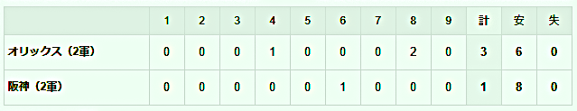 (ウエスタン・リーグ、阪神 1 ー 3 オリックス 、 13 日、 SGL )