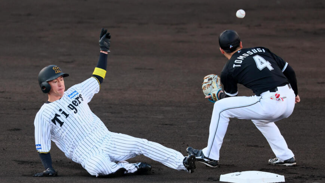 この回も先頭近本さんのヒットから始まってる ワイルドピッチで2塁に進み 中野選手のタイムリーで2-0に