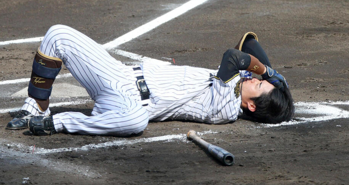 6回一死、阪神中野選手が頭に死球を受けテその場で倒れこんでしまいました