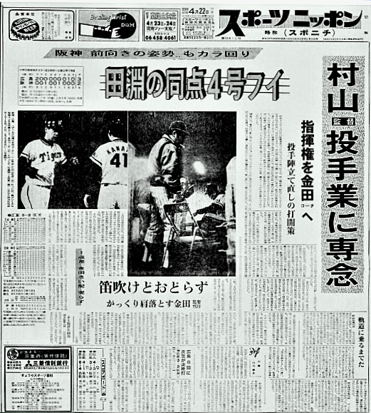 4月21日には村山監督が「投手陣の不振を打開したい」という理由で、指揮権を返上して現役一本に専念すると発表し、金田正泰ヘッドコーチが監督代行に就任するという事態を招いていた。