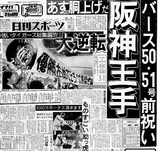バースは優勝を決めた10月16日の試合で52号を打っていたが、このとき阪神はまだ5試合を残していた。
