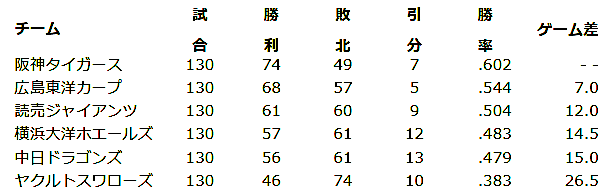 現実に阪神は翌13日から6連敗の泥沼に落ち込んでしまい、広島、巨人に次々と抜かれ、3位に転落してしまったのである。