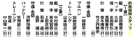 阪神は、かろうじてAクラスを確保したものの、貯金は0。チーム全体が優勝時に比べて弱体化し、2年連続三冠王に輝いたバースのワンマンチームに成り下がった。