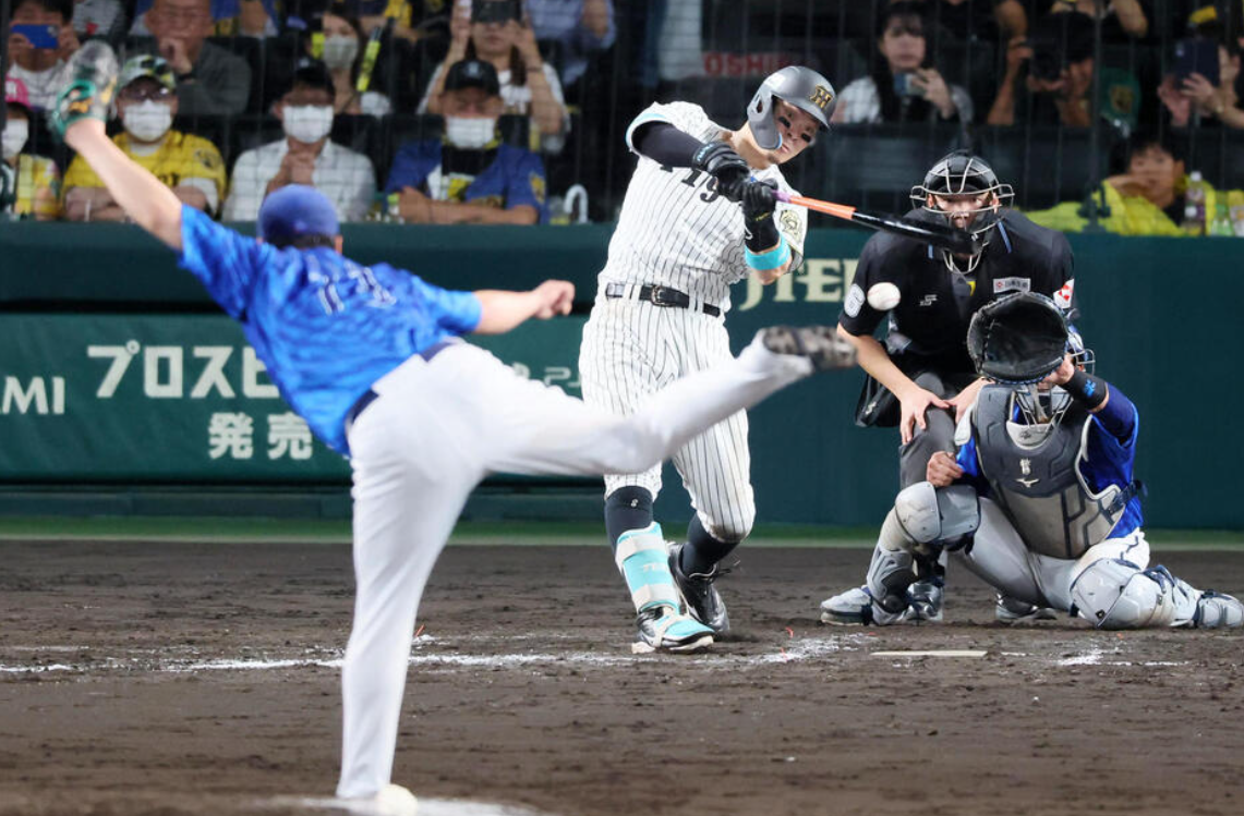 3-3の同点で迎えた延長10回裏 先頭の中野選手が綺麗な流し打ちで出塁し3番森下選手の打席 変化球を待ってたのかどうかはわかんないけど 佐々木投手の初球は真ん中やや外寄りへ逃げる119キロのフワッとしたスライダー