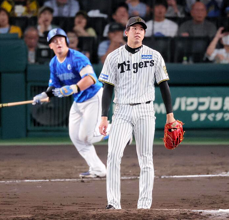 次の桑原選手を三振に仕留め 迎えたのが好打者の佐野選手 ここで切っておけば流れを渡さずに行けたかもしれないんだけど 初球のインハイストレートをレフト線へ持っていかれタイムリー2ベース 同点になっちゃいました 才木投手はこの回だけで34球も投げさせられてるよ