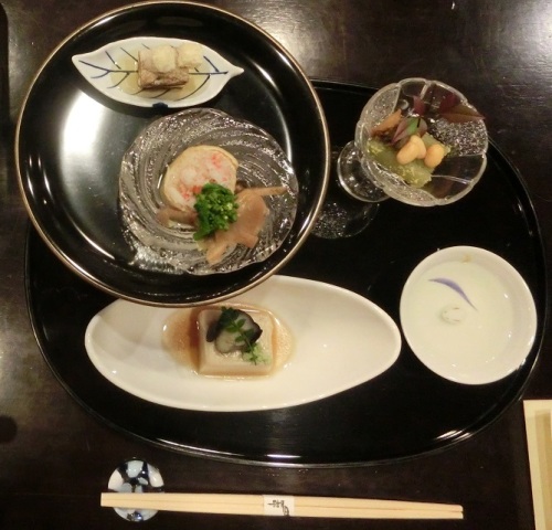 河口湖畔の秀峰閣 湖月に宿泊。湖月は料理も評価が高いので、夕食を楽しみにしていました。でてきた料理は創作会席といった感じの料理。食前酒の酢立酒から始まって…先附け4種左上から 柿とバターの博多 蜂蜜 クルトン 蟹信田巻き 菜の花 椎茸 胡麻豆腐 茄子 山葵 木の芽 トコブシとフキノトウのカラスミ和え椀もの牡蠣茶巾 細根大根 白味噌仕立 口柚子お造り本マグロ ブリ カレイ ハタ 牡丹海老 生うに 妻一式台の物牛タン鍋 大根 焼ねぎ 人参 鉢唐辛子温物、煮物温物は、鮑のゆず釜蒸し 椎茸 海老 筍子 菜花煮物は、タラバガニ セルベス 南瓜強肴、酢の物、食事 強肴は左から、ワインビーフひれステーキ、 蟹真丈湯葉ごろも すだち 銀鱈とも焼 鱈白子 かさね湯葉田楽 酢の物は、鮭菊花巻き 穴子 芋玉采 胡瓜 黄味酢食事は、鯛とむかごの炊き込みご飯 味噌汁 香の物水菓子焼栗プリン メロン いちごさすが料理自慢の宿、品数が多くどれもが美味しかった。季節の素材を生かし、凝りに凝った料理には圧倒されましたね。部屋食でしたが、途中、配膳に間が空いたのはちょっと残念でした。このあと、ラウンジでマジックショーやビンゴ大会を楽しみました。部屋に戻ると…年越しそばまで頂くことができました。美味しいものをいっぱい食べて、もう満足。このままカウントダウンをすることもなく爆睡してしまいました。【特急列車付プラン】富士河口湖温泉 秀峰閣 湖月(JR東日本びゅう提供)富士河口湖温泉 秀峰閣 湖月
