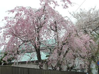 現場に向かう途中で見つけました。東武野田線・鎌ヶ谷駅から歩いて数分の所個人の所有地内に 見事な枝垂桜です。生憎 曇り空で 色は今ひとつの写りですが・・・ね、見事でしょうこんなのが見られるから 現場に行くのも悪くない