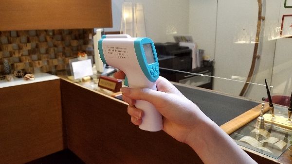 ・お客様の入館時に非接触型体温計にて体温測定を実施致します。