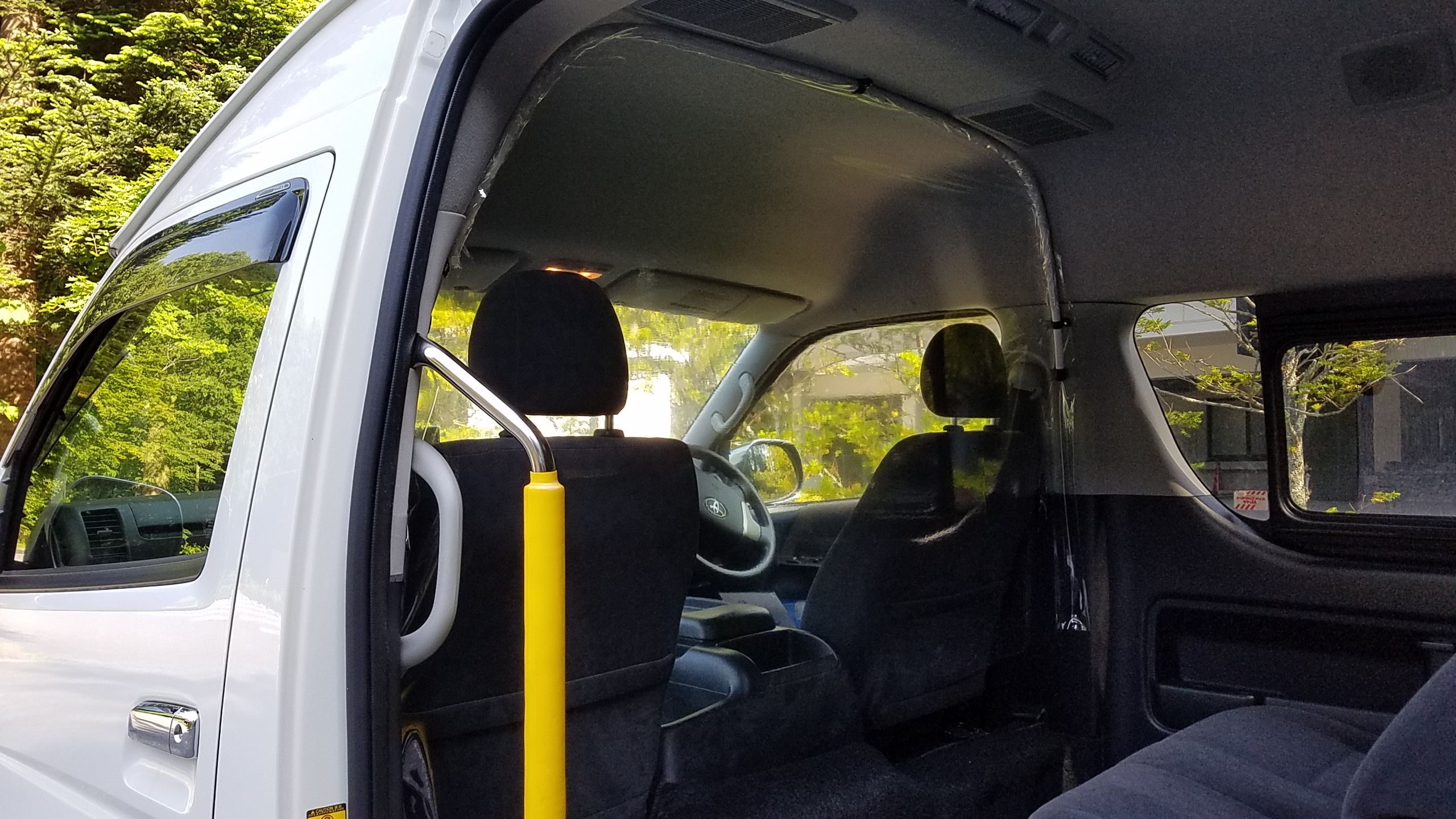 ・送迎車の運転席の後ろを透明ビニールシートで仕切りを入れました。