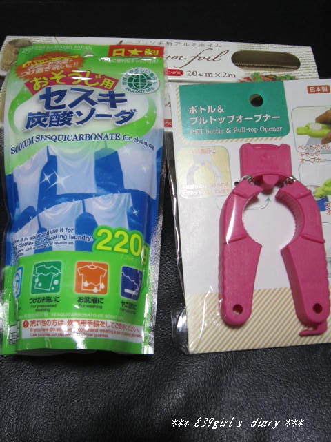 会社帰りダイソーとセリアにセスキ炭酸とアルミホイル買いに行ったのですが・・・ピンクのはペットボトルとか缶ジュースのプルトップを簡単に開けるやつ家族で太ってるくせにできない~とかいう人がいるので… ランドリーネット買っちゃいました最近結構 柄物が増えてきたよね~たしか キティちゃんとかキキララもあったけどこのミッキーなら 大人でも使えるかなって思って…赤のドットタイプもあったけどこれにしてみました。洗濯が楽しくなりそうだわこれ、サンキュークーポン使ってブラック買ったんだけど思いのほか気に入りましてグリーンも買ってしまいました薄いんだけど良く伸びて軽いしシェルボタンもいいアクセントになるし~ただグリーン、まだ届いてないけど、脇汗がちょっと不安だなあ。