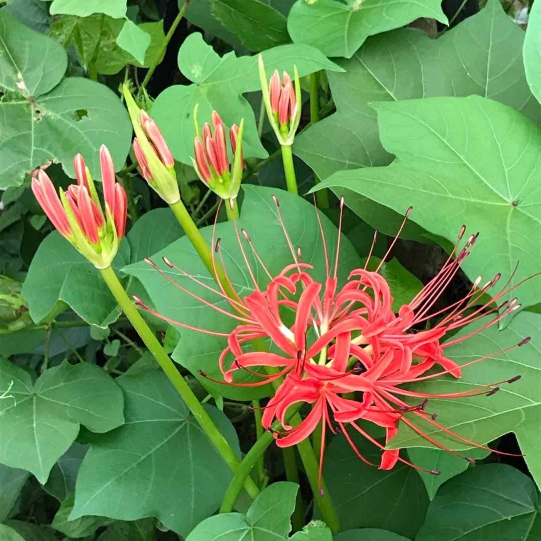 もう9月も半ば コロナ禍2年目の秋 長雨と猛暑の夏が過ぎワクチンも2回目完了 ワクチン2回目は 39度の熱で寝込み 遺伝子分解して 滝壺におちる悪夢に うなされた‥プロメテウスの見過ぎか❗️ 副作用が出た方が 免疫がしっかりつくと 言うけれど キツかったわぁ ~ 体調が戻るのに 10日かかった‥ 寝込んでる妻に 「メシがないわだ❗️」っと むくれた主人と冷戦中‥ 妻のイカリが 完全におさまるまで 高くつくわよ❗️ アレもコレも 我慢なんかするもんですか‼️ 新しく種まきした綿は 天候不順のせいか 花がやっと咲き出したところ この調子じゃ 実がはじけるのが初冬になりそうだ‥ もう 彼岸花が開花 こんな世でも 季節は確実に 健気に巡っている。 糸紡ぎ 沈殿藍作り 頑張ろう!