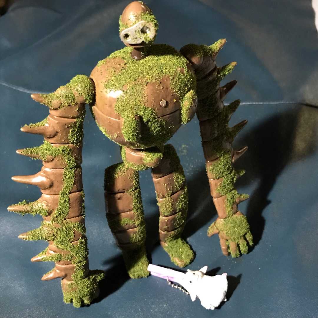 冷たい雨の月曜日 ゴミ出しの後 ベランダに 雨水溜め用のバケツを並べた 昼からも土砂降りで 沢山貯まりそうだ。 先週末 息子が 誕生プレゼントだと ラピユタのロボット兵を仕上げて 持って帰ってくれた‥苔付き❗️ 植物達と撮影用に欲しかったので 嬉しい💕 プラモ作りを 役に立たないっと 過小評価してたのだが 結構難しらしい パズーは自分で作りなよ‥だって(・_・;
