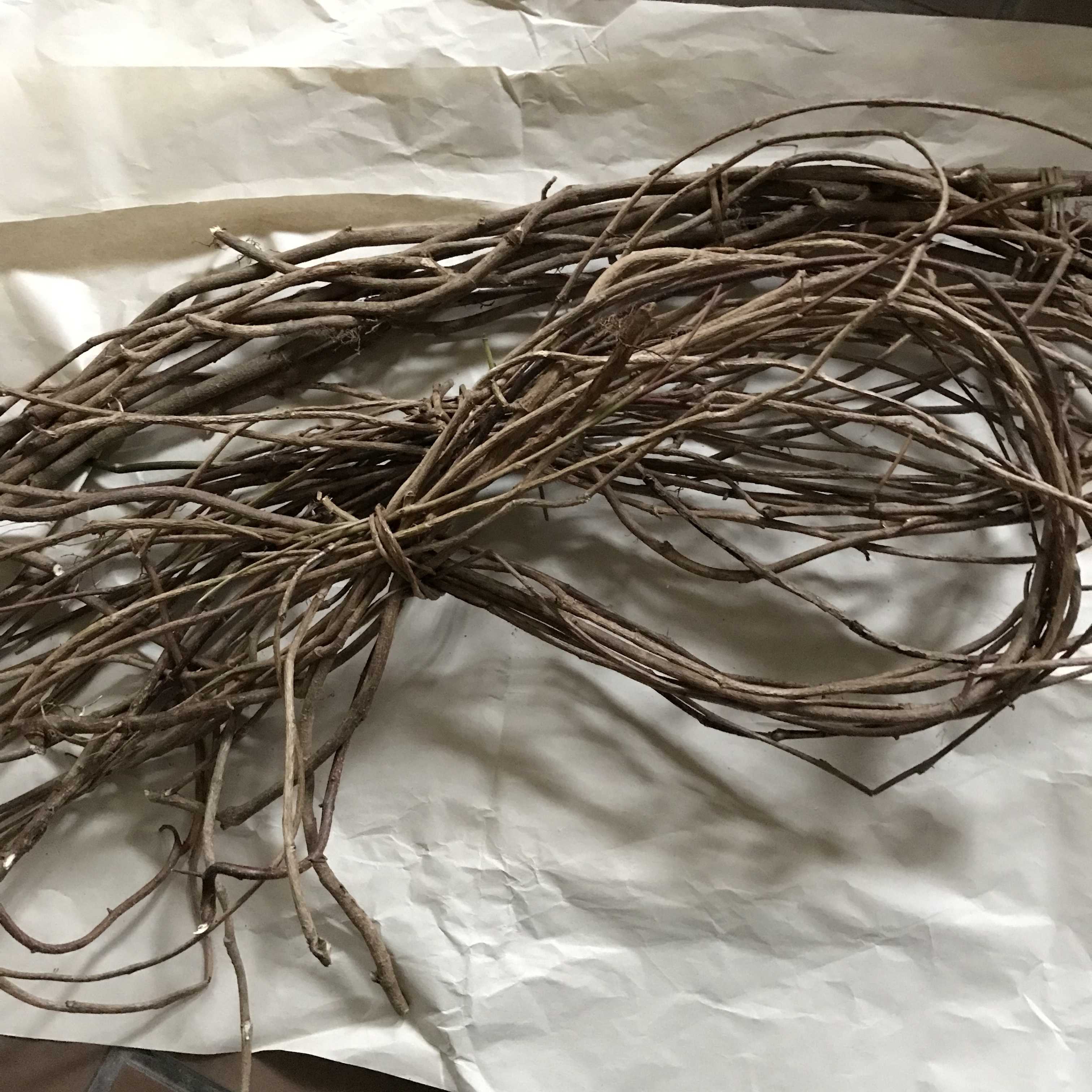 先週日曜日にも 主人と実家の庭へ整備にgoクレーマー達に「してます」型を出した❗️草刈り後 フェンス側に 木苺の苗も老夫婦でキャーキャー言いながら植えた‥月曜朝 午後に 四国は梅雨入りして大雨。。午前中 球根の掘り上げが間に合って良かった☝️ゴロゴロ 養生しよう~‥っと思いながら実家剪定で持ち帰った蔓を 洗って 拭いて‥黙々と編む‥姉に聞いたところ クズじゃなくてキヅタのツルだわって事だった‥先週作ったのは(向かって右端の)よく乾いて とても軽く丈夫になってる‥使えるな、ワタシ‼️