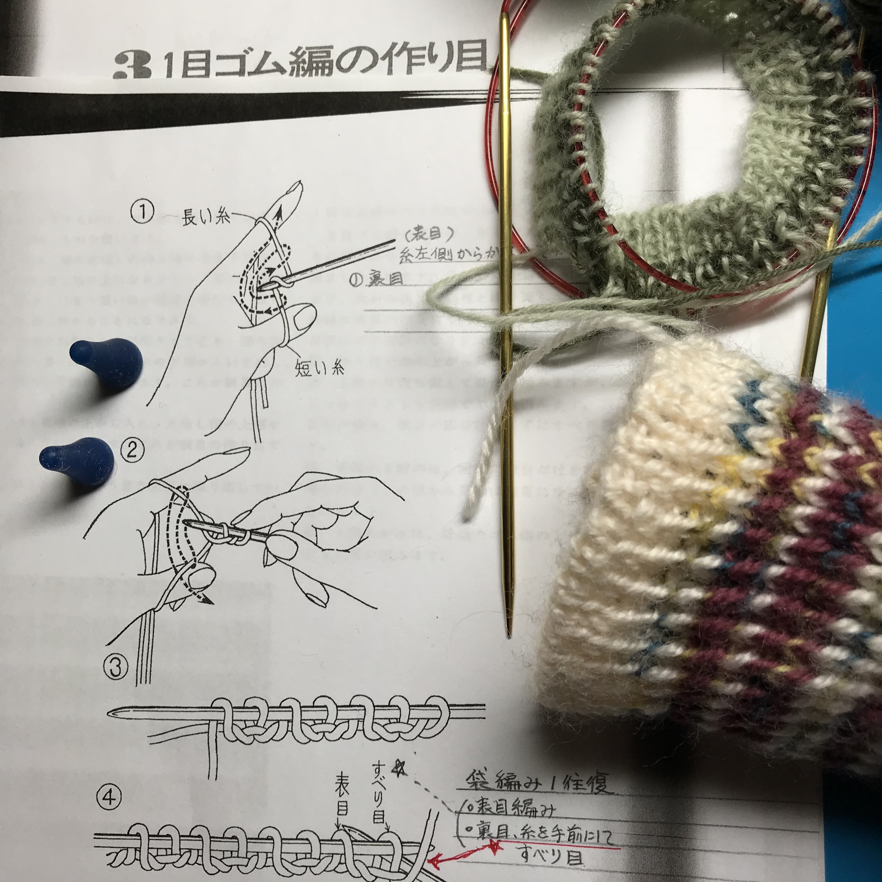 常々 大袈裟に~っと本気にしない天気予報が、滅多にない深夜の寒さに 耳が霜焼け!痒くなる耳をかきかき 気になって眠れないので靴下を追加で編む。。で、靴下の履き口の改良をと思って資格受講の時に世話になった赤本・青本を引っ張り出して 指で作る一目ゴミ編み・袋編みを深夜コツコツ 復習。。。金曜夜には 息子が帰ってくるので注文の 高野豆腐(おこうや)とマンバのけんちゃん(高菜の煮物)を夕食に作らなけりゃ‥編み物で両手が塞がってたら 耳はかけまい‥よな。。。