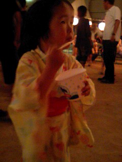み~は、プールで付し浮きができるようになりました。                                てっちゃんも春休みから短期のスイミングデビューして潜れるようになりました。                 そして、い~ちゃん!!                                                  去年は嫌がって途中退場だった盆踊りで楽しく過ごせました!!!                        三人同じ様にはしゃいですごい可愛かった~二日連続行ってしまいました~                果物やアイス系に抵抗がある、い~ちゃん。カキ氷も食べれるようになりました。