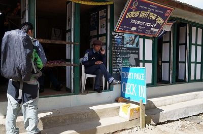 街のはずれには街道に向かう人のチェックポイントがある ガイドが手続きを済ます