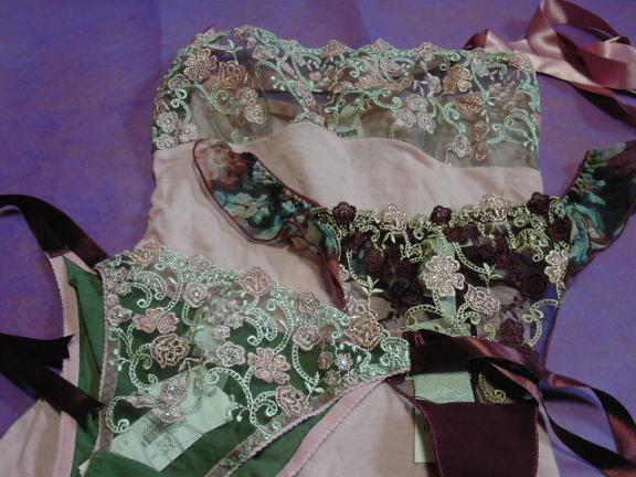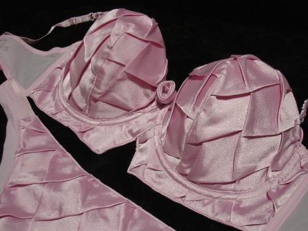 本当は昨日日記を書いてたんです。。しかし最後の確認でちょっと他の方の サイトを見ようとしたら消えちゃいました。。。 あぁ・・・・(涙) 保存しとけば良かったー!! という訳で フテ寝しました! でも今日はお休み前なので、書かなきゃね♪ オートルフォアは自然光で撮影したいのでまずは、まだ新作?のコチラから。。 ラヴァージの「Songe」です。サテンのような感じで光沢が綺麗です 真ん中のお花の部分です。バラですかね?? タンガのアップです。縁の部分は生地を変えてあります。実物は可愛いのですが 愛想があまり無いデザイン(シンプル?)だからかネットショップでは全然 見かけませんねぇ ^_^; フランスでは人気なのかな? だってラヴァージの公式サイトでトップを飾ってるし でも私の好みとしては四角い部分をもう少し小さくして欲しいな。 でおまけに私の手持ちのラヴァージも撮ったので・・ ラヴァージの「PRECIEUX プレシュウ」です。形は二枚ともストラップレス♪ こちらがミントです。。縁の部分とストラップ、リボンはベロア素材です こちらがブラックです。何か色が変ですが。。こちらは未だにボトム探してます。。 こちらはキュロットです。中にタンガが内蔵されているようなカンジです。「PRECIEUX プレシュウ」お色が4色あるんですよね。。後はミント×ライトパープルのとパープル×カーキ。ホントはこちらの色の方が 好みです(>_