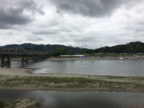 橋の上でUターンして堤防上に駐輪して、徒歩で会場を目指します。
