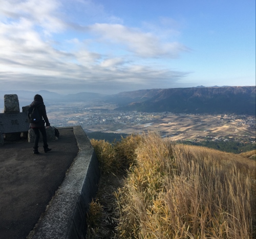 阿蘇五岳を一望でき、広大なカルデラ盆地や大分県のくじゅう連山まで、