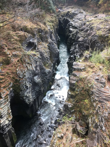 太古の昔、阿蘇山の火山活動によって噴出した火砕流が冷え固まり侵食された断崖が