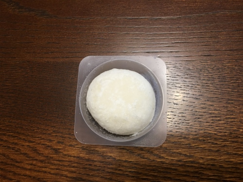 でかい雪見大福の中にごろっとした白桃が入っています。