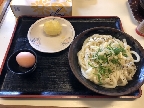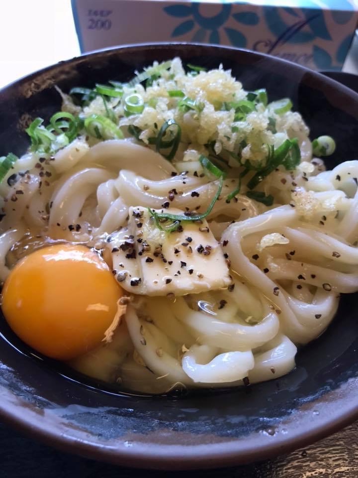 さて、出ました。釜バター。生卵を載せてくちゅくちゅしたら