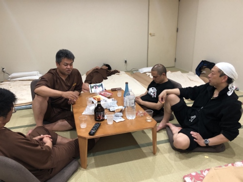 カプセルホテルの大部屋を準備してもらってた。ここで奈良の隊員が合流。