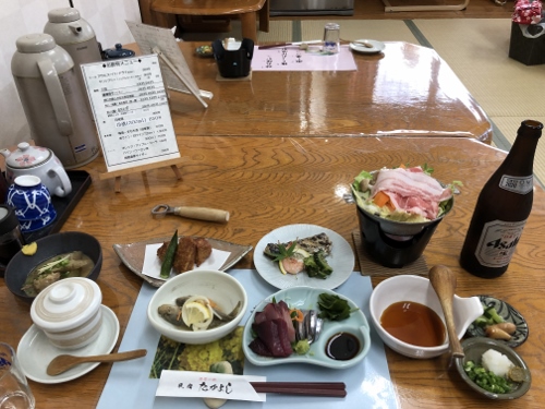 晩御飯は地元の食材を吟味した家庭的な郷土料理です。