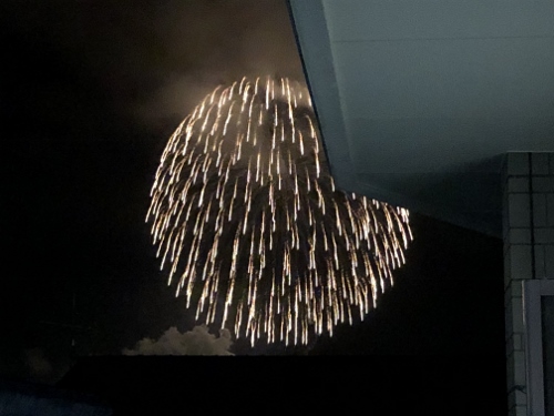 ベランダからの花火と、鹿児島SAでかった「つきあげ」を