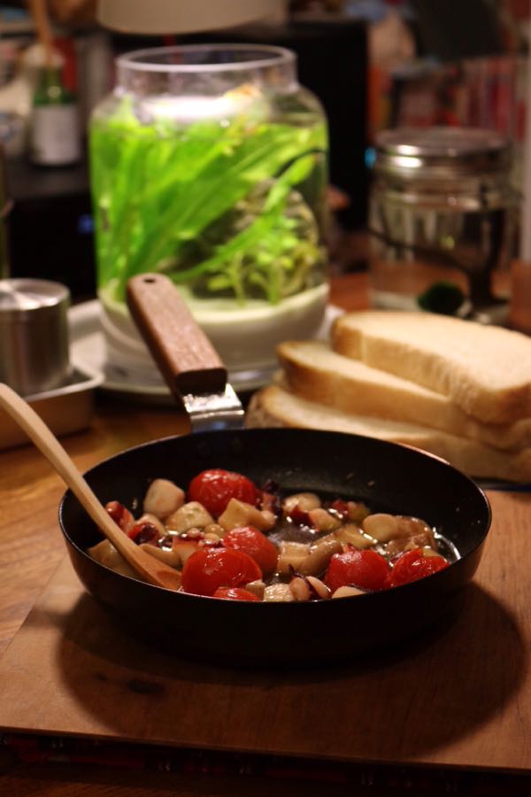 いま、我が家で大流行りのアヒージョ小さいフライパンで簡単に作れ、そのまま卓上へパンにつけて食べると永久に食べられそうです先日、水草とまりもを別居させましたまりもの毛みたいなものが水草についてしまって手入れが大変そうだったので。。。一緒のほうがかわいいのですがいたしかたない!その前に丸みのあるボトルからCLASKA Gallery & Shop "DO" で衝動買いしたガラスキャニスター?に引っ越しました長い水草がはみでています(汗)メンテナンス(水換えなど)は人任せですが。。。緑があるだけでも楽しいな〜!テレビのない生活がひますぎて夜桜撮影会へくりだしました70Dを使ってあげられてよかった。。。月曜から夜ふかし見たかったな(涙)アンバイの丸いフライパンが大活躍です!おすすめです〜スーパーで100円くらいで売ってたアヒージョの素これはアウトドアにもおすすめ!フランスパンを持っていけば油も残さず食べきれますよ