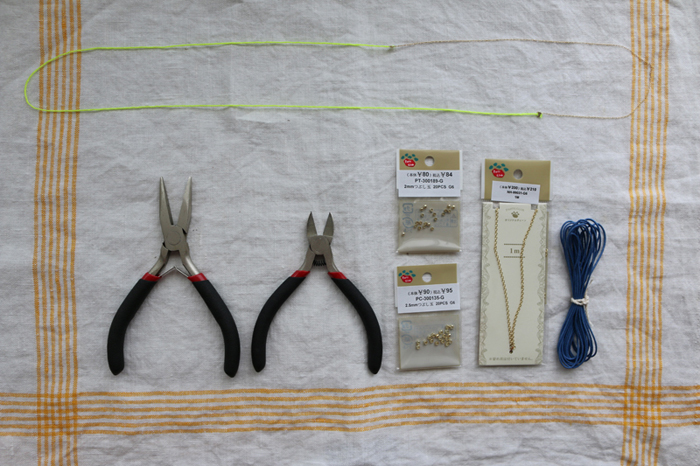 去年、よく行く洋服屋で買ったほっそいネックレスシンプルなデザインが気に入って買ったのですが一度腕にひっかかりちぎれてしまいました見た通り単純な作りだったこともあり必要なパーツを調達し自分で直して事なきを得ました(安そうに見えてそれなりの値段だったからよかった…)これなら自分でも作れるな〜と思い先日、いい感じの青いひもを雑貨屋で見つけたのでさっそく作ってみました!しかし元のネックレスよりチェーンが太くつぶし玉に入らない!汗なんとか無理矢理入れてつぶしてつなげ3本できあがりました1本は母親にあげることにして前に友人にもらったかわいい袋に入れてみたらいい感じになった…はず