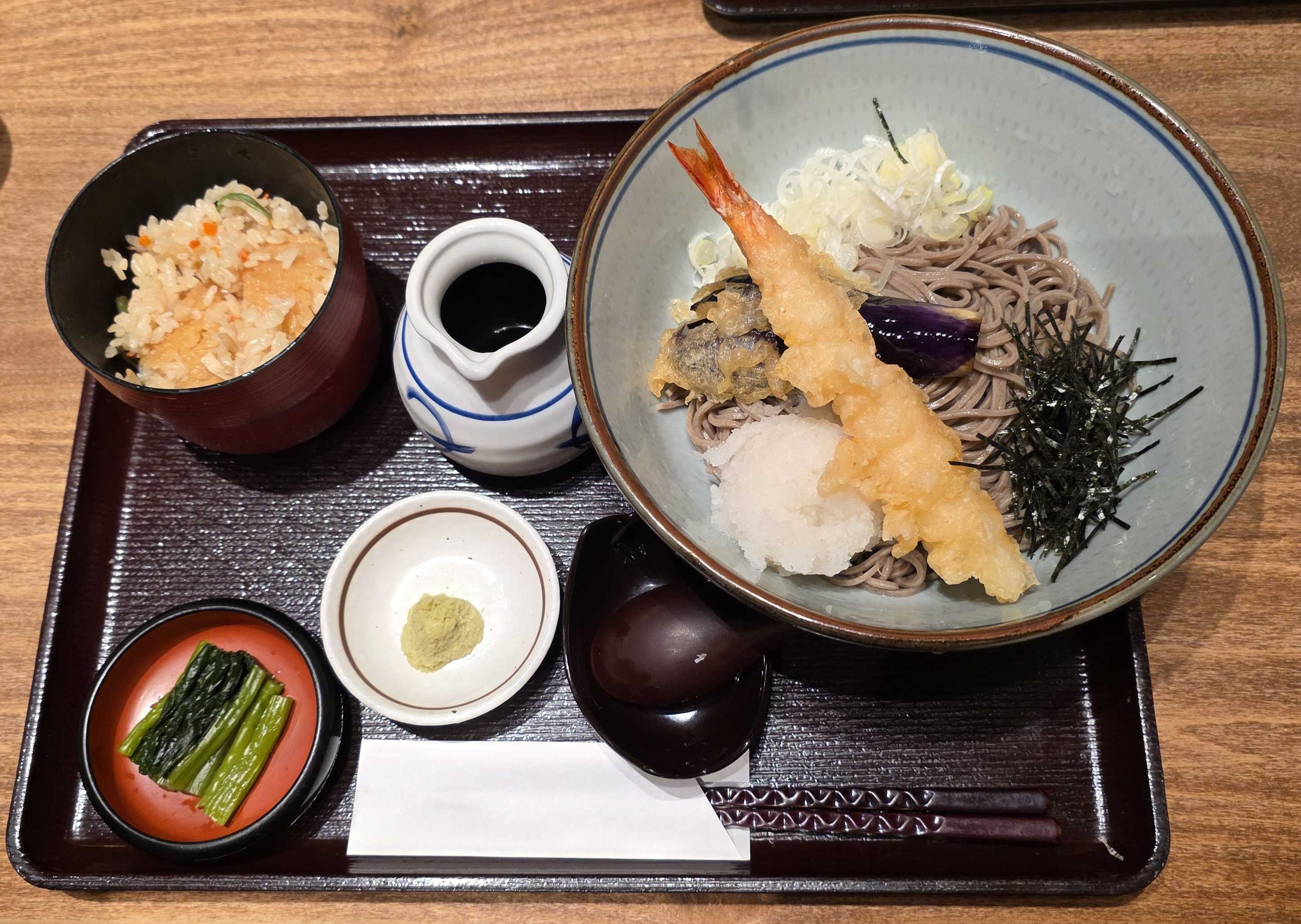 さて・・・昼飯です・・・大阪 でっ とも考えたのですが~~~本日は別用で帰りは 阪急電車 でっなので~~宝塚 まで戻って ゆっくり?食べようと意見が一致宝塚の そじ坊 さんへ期間限定大海老天おろしそば 山菜かやくご飯セット を二人とも即答サービスタイムでっ 「そば半玉 無料増量可能です」って言われて~~~ 勿論!!私は即座に!!「御願いします」(笑)どうも・・・本格的な そば屋 さんだったみたいホント 大きな大海老辛くない 擦りたて の 山葵そば湯 も出て来て・・・「・・・梅田だったら・・・この値段で食えないなぁ~~」って言いながらそば 堪能して来ました プライス ¥1.140円 美味しかったぁ~~~~