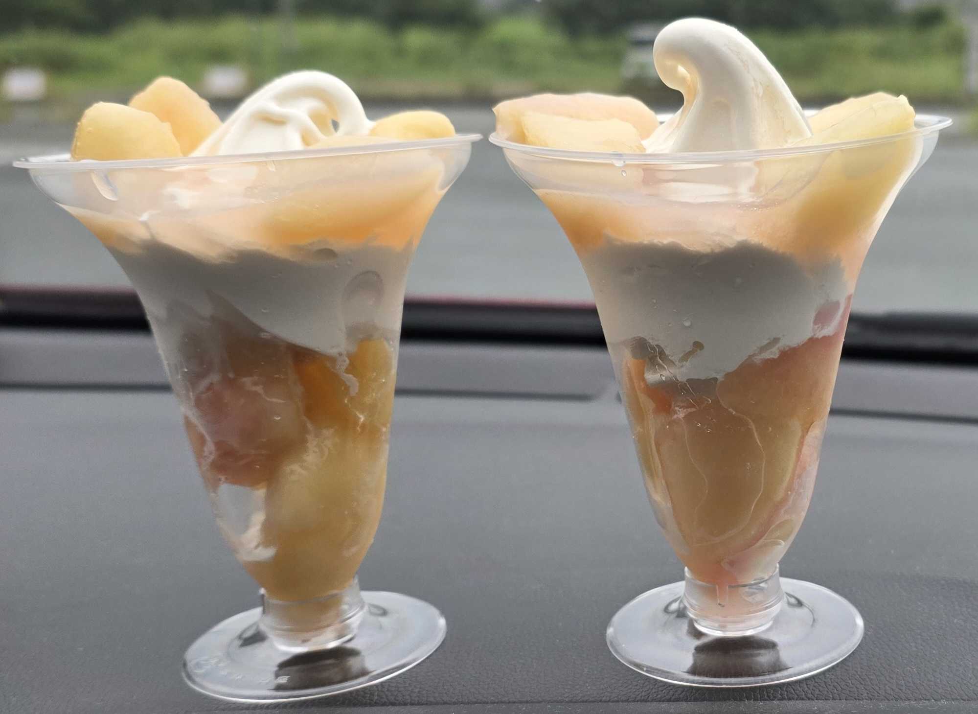 本日の ミニストップ 久々に パフェ に 完熟白桃パフェラッキー 8日 からの 販売 みたい完熟と言うだけあって~~~やわらかくて美味しい なんでしょう?蜜も良い美味しく幸せに頂きました。