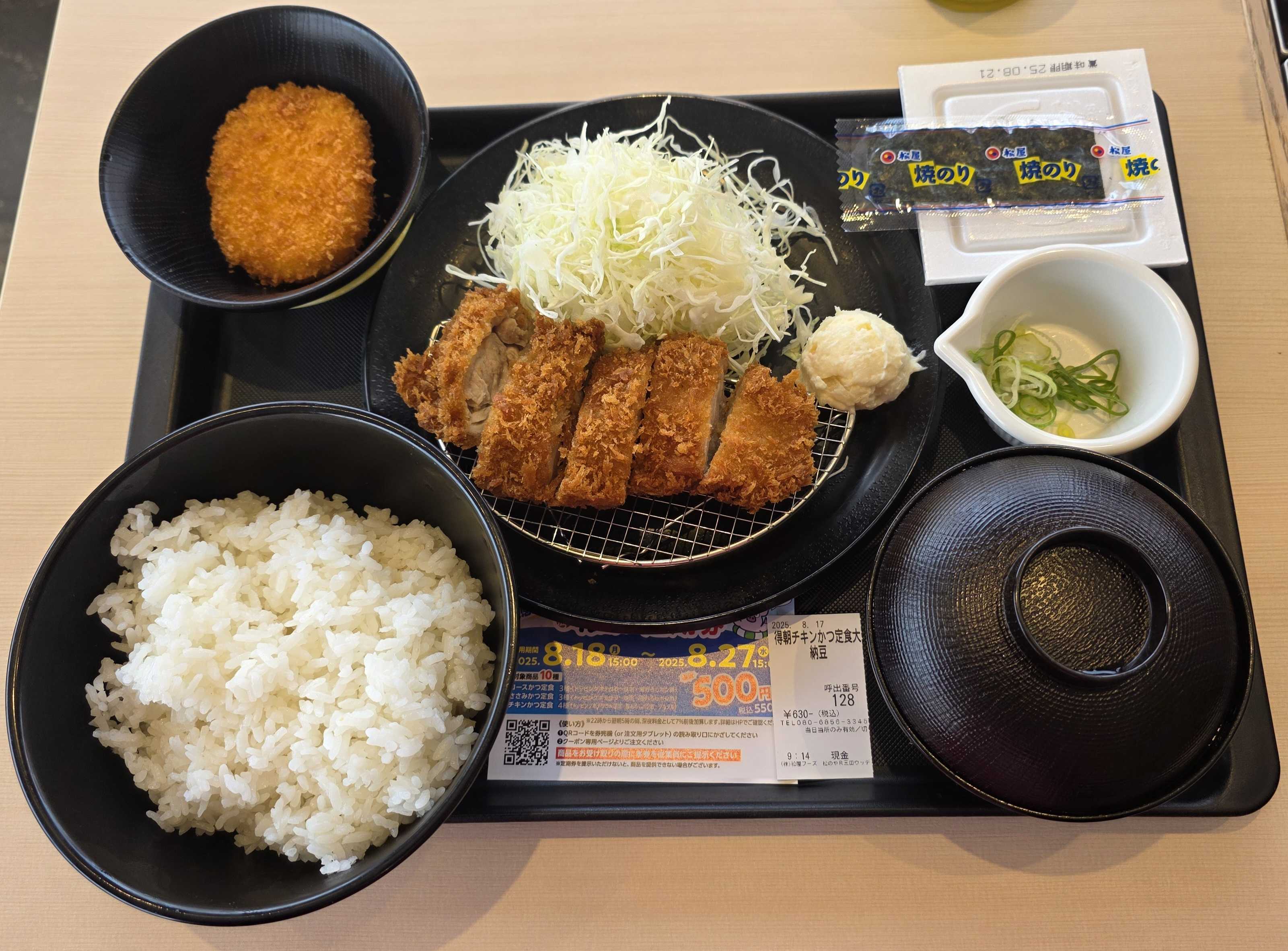 おひとり様ですし・・・サービスチケットも使い切れなさそうなので・・・いつもの松のや さんへ伺って チキンかつ が 復活してるぅ~~~得朝チキンかつ定食 小鉢チョイスは 納豆 にっ チケットサービスチケット コロッケ をつけて久々の チキンかつ・・・やっぱりコレが良いわぁ~~~美味しく頂きました