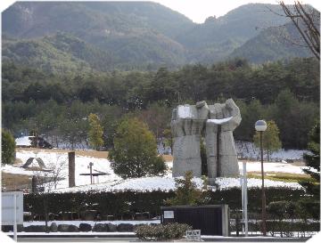 1月3日(火) 年末に行った中津川公園、 モニュメントに雪が、 握りこぶしが団結、絆というふうに思えました。 2012年は、力強く、復興し、世界が平和になる年を願います。