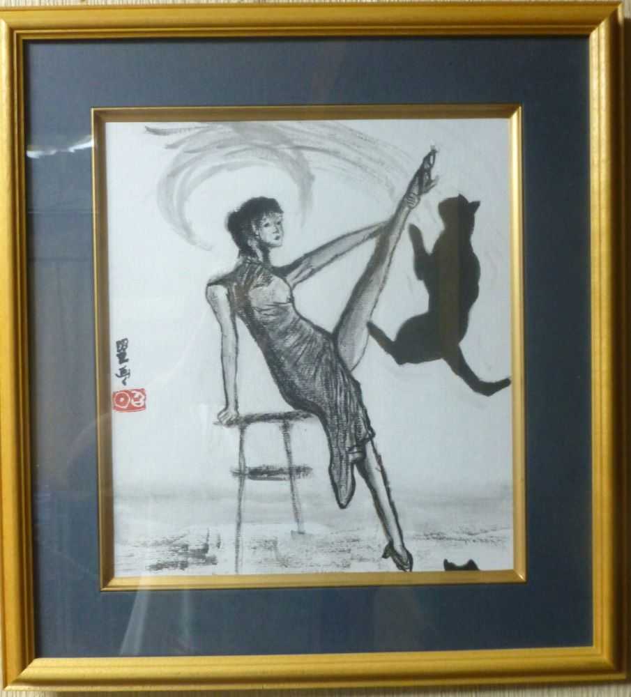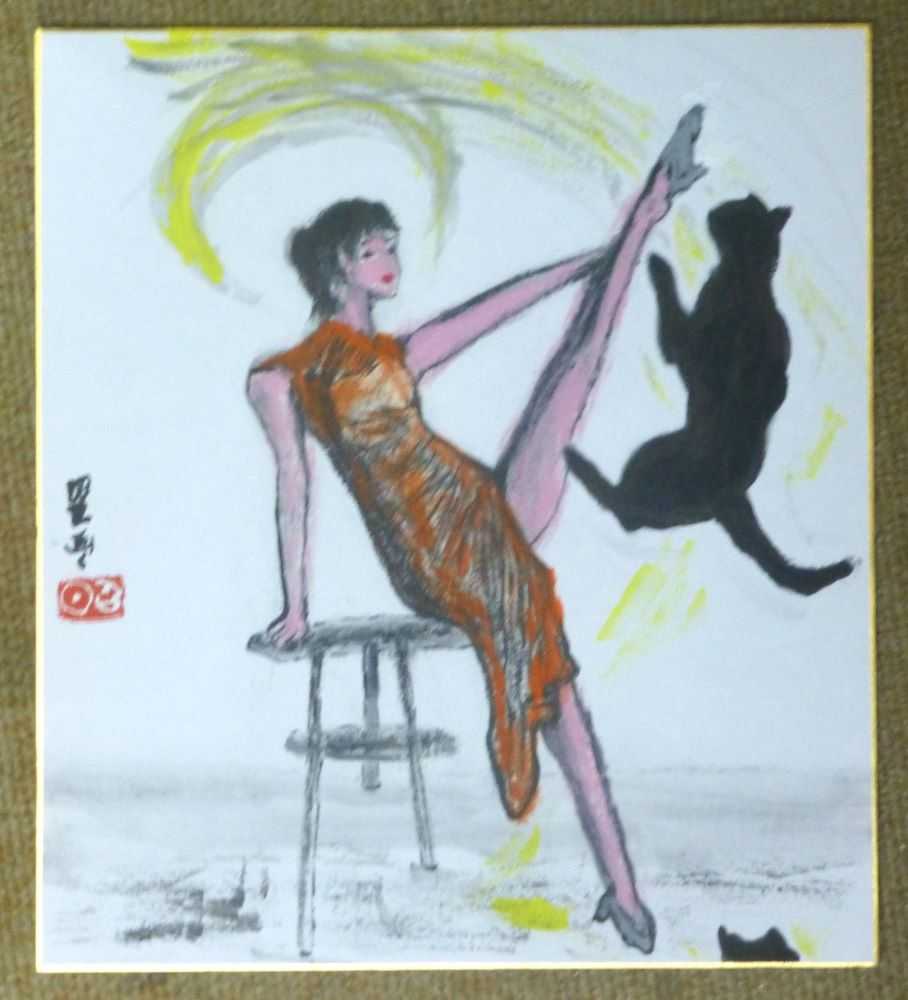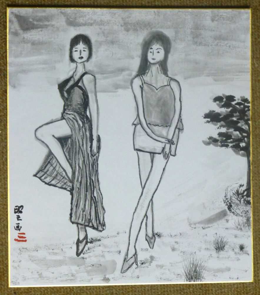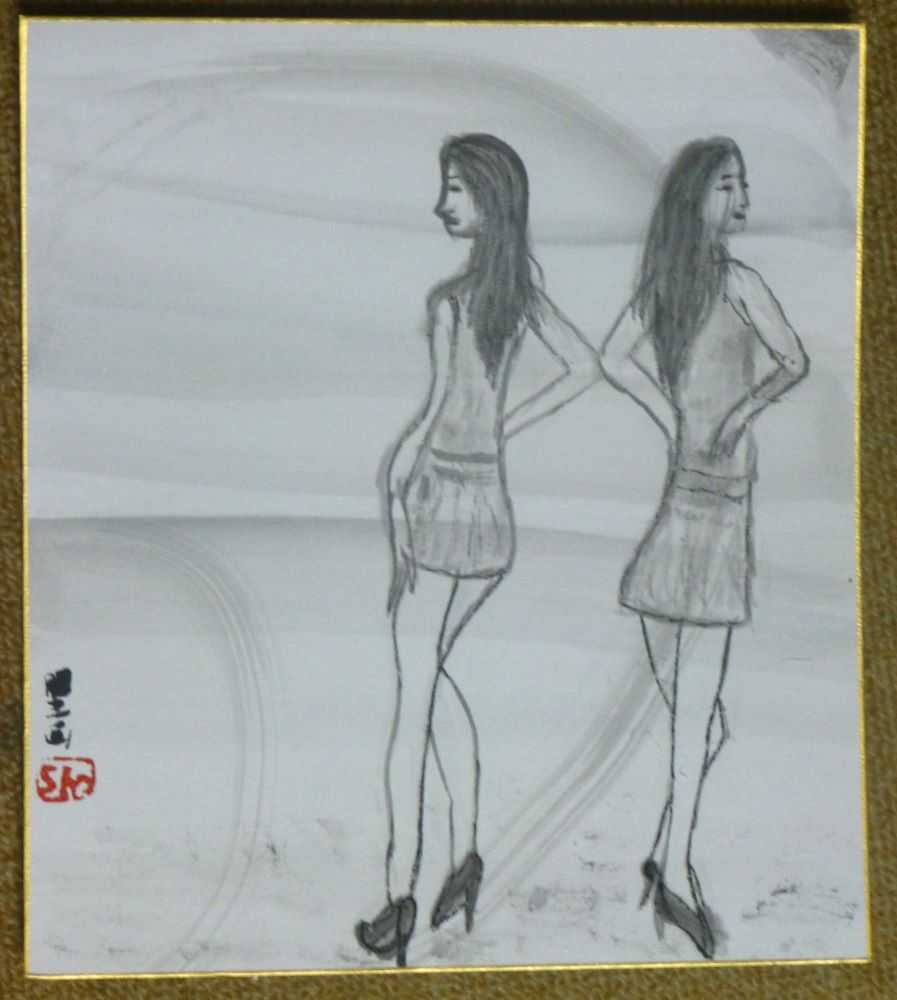 アクリル画を練習してから色紙に水墨で動画から絵を描いてみました