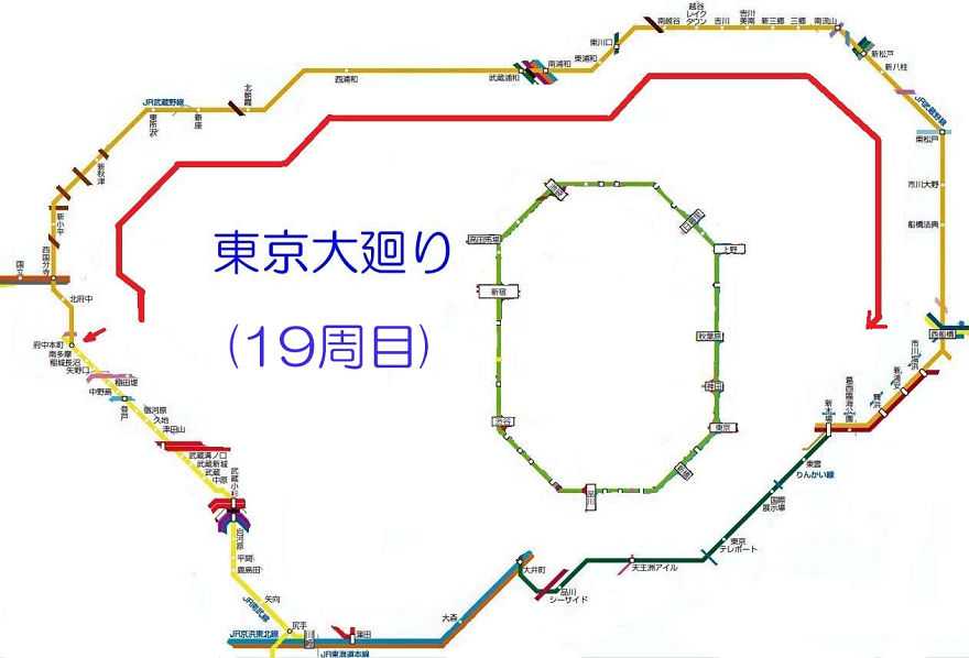 武蔵野線駅の府中本町駅を出発点として外回りで19周目