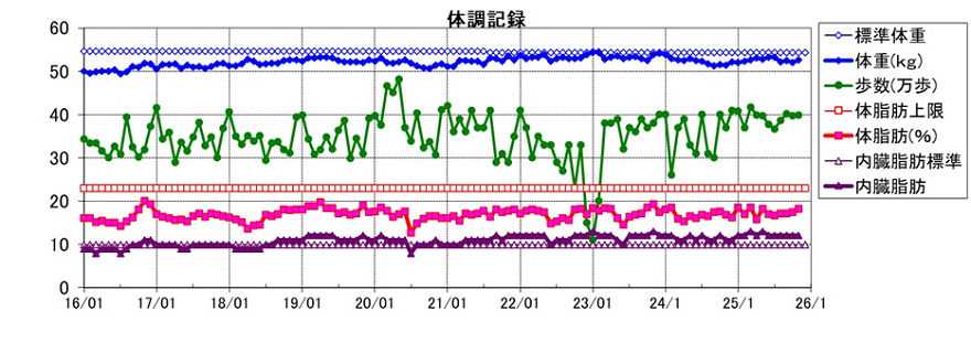 ウォーキングの歩数 :17、700歩(100単位に切捨て)(シッカリ13,606歩)