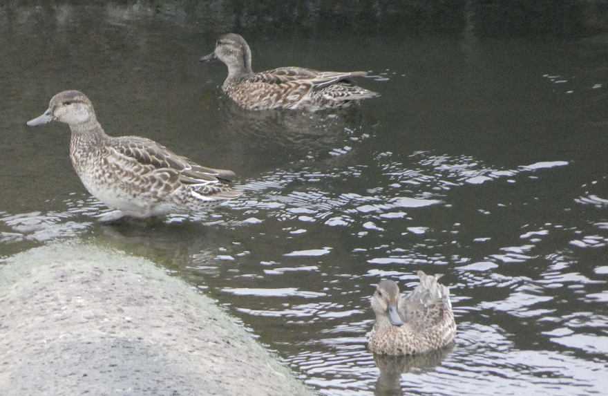 08:09、南浅川最下流魚道でコガモ。