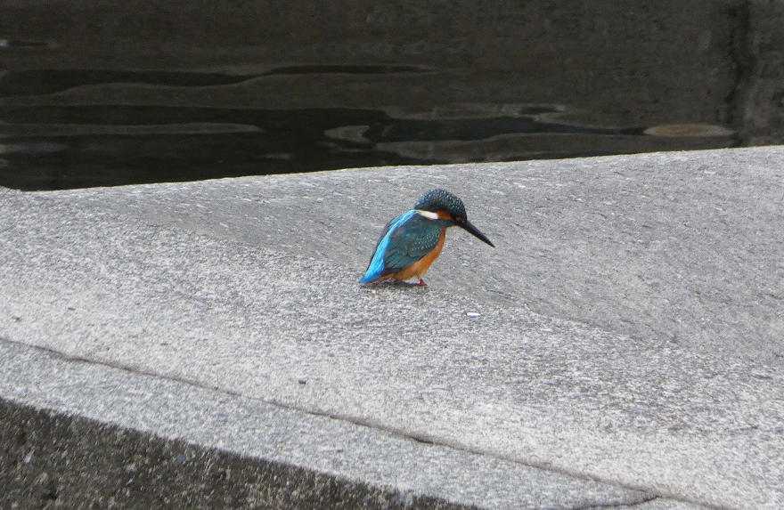 07:09、南浅川最下流魚道にカワセミ。