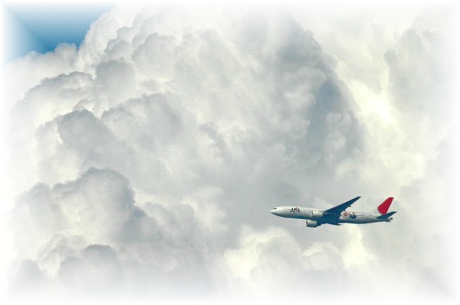 編集しました、2008/10/06 夏雲がモクモク発達して崩れて行く模様が手に取るように観察できました、上空の航空機は積乱雲を避けて通過して往きます 撮影日