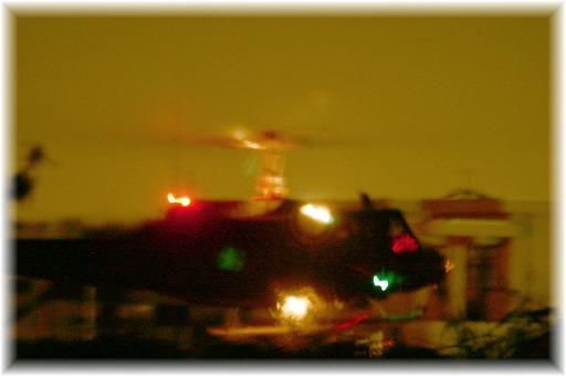夕陽の撮影して日没後 ウインチ訓練風景を望遠レンズを双眼鏡代わりにしていたら暗くて開放でもISO1600でも0.3秒のシャッタ- スピ-ドなので撮影してもムダかもとおもいましたが何者もにも挑戦ですヘリコプタ-のライトもスロ-シャッタ-なのでヒマワリ化していますょ 吊り上げの隊員は小銃かまえて警戒態勢だょJTエンジン タ-ビンのド-ナツ状の紅い火が薄っすらとみえています わかり図らいですが! 拡大して (拡大の仕方はペ-ジ/拡大/200%ぐいをクリック)紅いライトの光のすぐ下です?追記/編集吊り上げは遠いので肉眼では見えません、背景がよければ見え隠れするていどですので念のため双眼鏡がないとね...